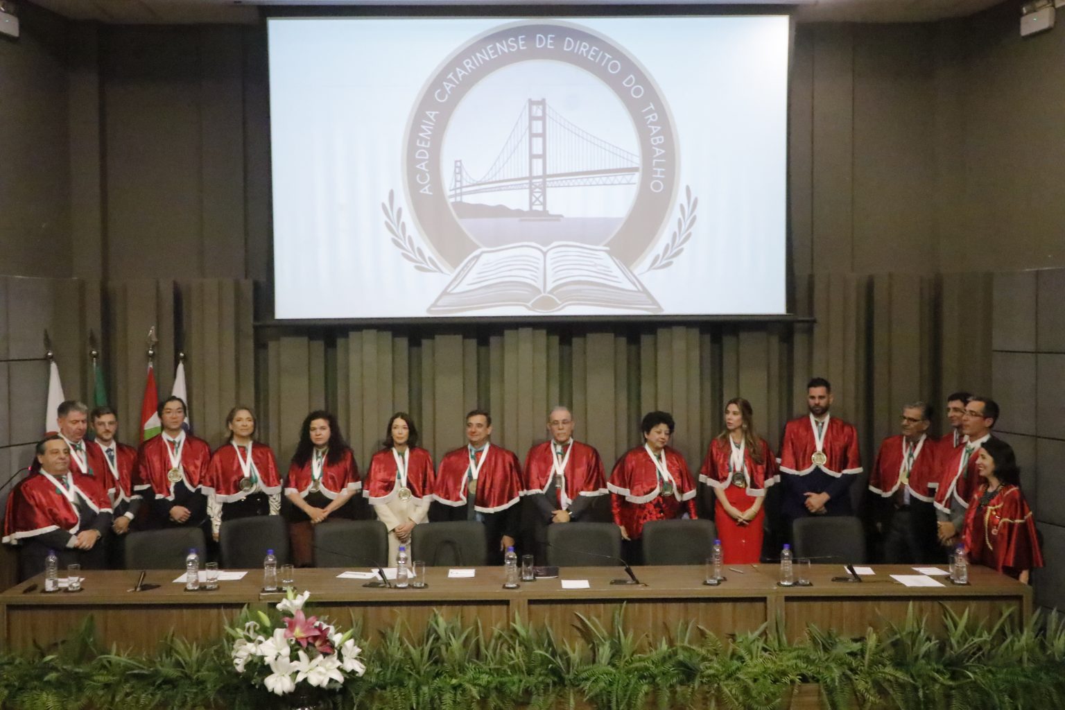 Lançamento da Academia Catarinense de Direito do Trabalho (ACDT) e Cerimônia de posse dos membros honorários, fundadores e efetivos do ano de 2025. A ACDT tem por finalidade a produção científica e profissionalizante buscando promover o estudo, a pesquisa e a difusão do Direito do Trabalho e áreas afins, defendendo a aplicação dos princípios e normas para a defesa da justiça social e a promoção dos direitos humanos.